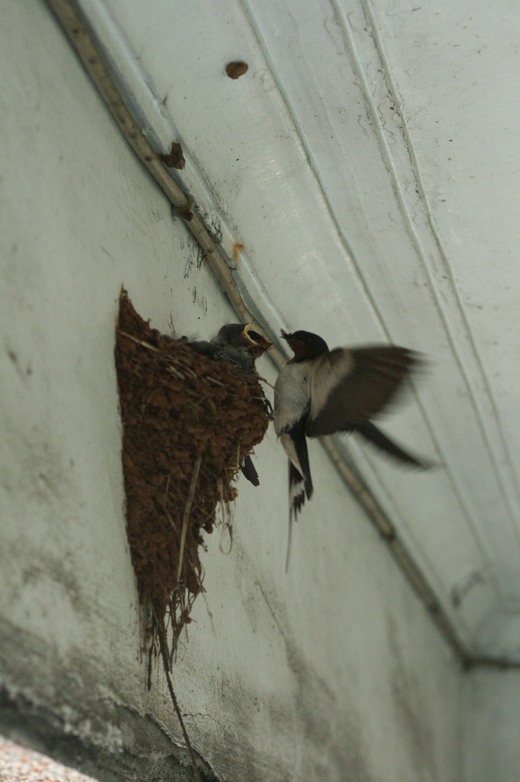 於是我拿相機記錄了一張母燕餵食小燕的一剎那