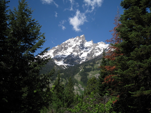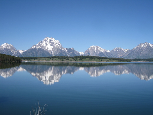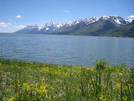 在台灣五0到六0年代出生的人對「小英的故事」這部經典卡通可能有點印象,內容是敘述一位少女小英在攝影師父親死後,隨著母親和一隻忠心的小黃狗趕著驢車、橫越阿爾卑斯山投靠遠在法國祖父的故事,在卡通中阿爾卑斯山皚皚的積雪和遍地的野花綠地的夢幻場景令人神往不已。很幸運地,在美國黃石公園南方的不遠處也有一個這樣的世外桃源:「大堤頓國家公園」,由於它和黃石公園的距離大約只有幾十分鐘的車程,以致於知名度遠不如後者,大部份遊客把這裡當作是前往黃石公園中途的休息站,殊不知大堤頓的冰河湖泊之美和黃石的自然景觀相較之下毫不遜色,和黃石的狂野奔放相較之下,大堤頓以恬靜的氣質取勝,以致於路過的遊客在見到令人讚嘆的美景之後莫不為沒在這裡多留幾天而大嘆可惜。