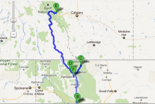 第七天:Canmore ->經庫特尼國家公園-> Kalispell,夜宿Kalispell, MT (車程298 mile, 6小時21分鐘)
