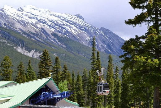 硫磺山(Sulphur Mountain)是遠眺班夫鎮最好的地點,在19世紀末這裡已經設有氣象的觀測站,海拔二千多公尺的觀景台讓班夫盆地中蜿蜒的弓河、溫泉城堡、針葉林和洛磯山脈構成一幅小瑞士般的美景,1940年瑞士的移民John Jaeggi在硫磺山頂的觀景台設立了一座洛磯山最高的咖啡廳,但是登山步道全長5.6公里需要二個小時的路程,讓人望之卻步,經過他多年的奔走最後得到瑞士財團的奧援,終於在1959年成立小巧可愛的登山纜車(gondola),只要八分鐘就能到達山頂的觀景台,變成班夫最熱門的景點之一。