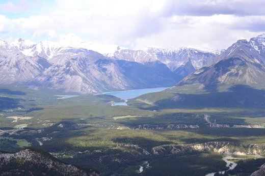 迷你汪卡湖(Lake Minnewanka)是班夫國家公園也是洛磯山脈最大最深的湖泊,迷你汪卡在印第安語是"湖中水怪"的意思,印第安人相信在湖中住了一頭半人半魚的水怪,因此你在這裡看不到印第安人在湖裡游泳和泛舟,但是不怕水怪的加拿大人將這裡開發成遊艇碼頭,沿著環湖路可以連接不遠的兩傑克湖(Two Jack Lake)與強森湖(Johnson Lake),這裡是野生動物最活躍的地方,到了傍晚許多大角羊(Big horn)和駝鹿(Elk)會到馬路上散步吃草,在湖邊的草地的地洞裡也住著許多地鼠,就像百貨公司打地鼠的遊戲一樣一隻隻的地鼠探出頭來,有些大膽的地鼠還會向遊客要食物吃呢!