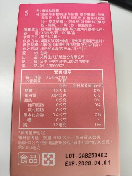 纖姿肽因為是膠囊所以吃起來沒什麼味道