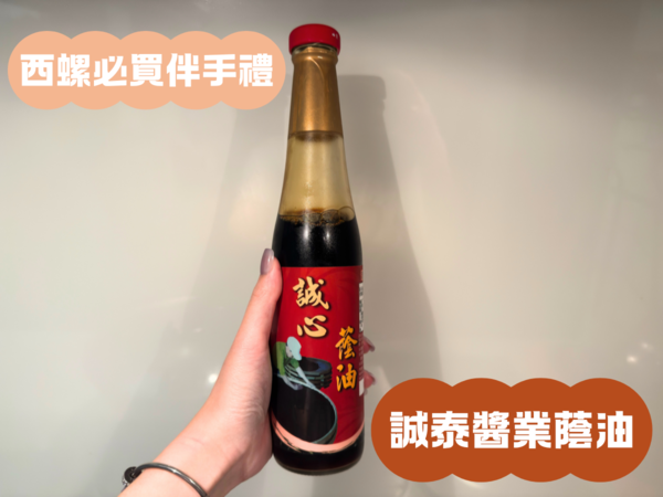 前陣子跟男友回他在雲林西螺的父母家 也順便在附近玩了兩天~ 每次出去玩,我總是習慣帶點伴手禮(๑´ڡ`๑) 這次是男友父母推薦的西螺必買伴手禮–誠泰醬業的蔭油 一開始我還想說:嗯?蔭油有什麼好買的...