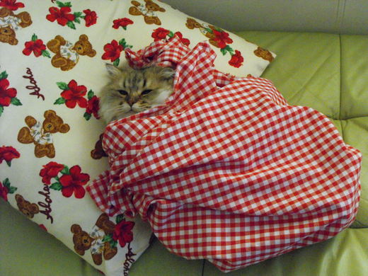 我有一個很棒很優的睡袋喔,我跟你說,睡這個很舒服,而且還要有枕頭,這樣會更舒服喔。