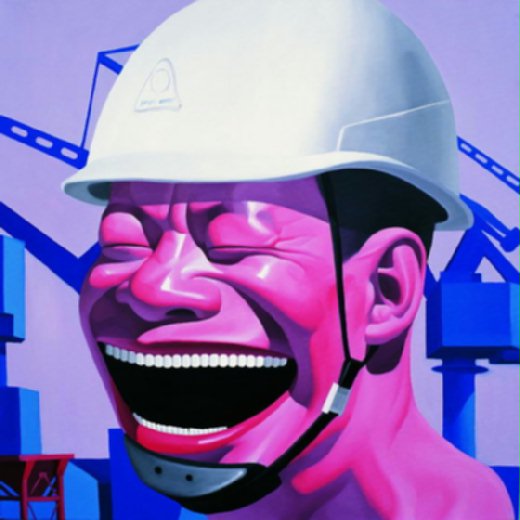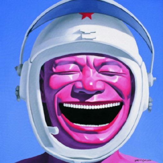 (圖片所示為另一位被熱烈追捧的當代中國藝術家 — 岳敏君之油畫作品 — <<帽子系列>>; 轉載自 tom.com 美術同盟。)