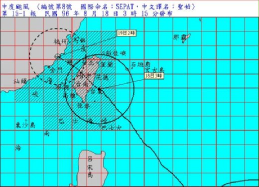 一晚沒睡,剛上中央氣象台網站,發現颱風已減弱,變中度颱風了. 而且原本預定早該登陸的,到凌晨3時,颱風中心還在外海呢 ! 颱風走得那麼慢,到底是好是壞,天亮後可揭曉.