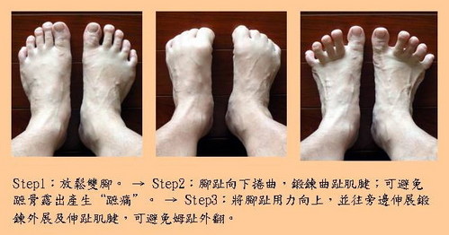 一般人剛開始,做圖上三種就得了.每天並試著用腳趾勾住東西撿起來,訓練靈活度.