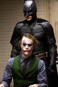 我們晚上8時許到電影院,等待的影迷陸續擠滿了大廳.我事先對此戲沒做功課,只知演小丑(Joker)的演員希斯萊傑(就是李安斷背山裏沒死的那個男主角),在演完此戲後,今年初因喀藥過多去世,各方對他的演技很讚賞, 有人提議今年奧斯卡給他一座獎….云云.