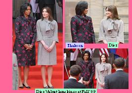 4月3日她到法國,和名模出身的法國第一夫人首度相遇,媒體焦點在比較兩人的穿著.