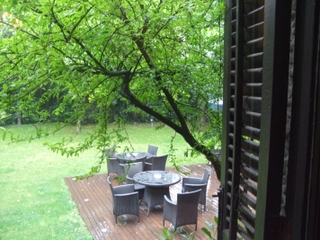 我們由專人導覽一圈後,回到一樓的餐廳,圍坐一桌吃水果聊天,窗外綠意盎然,滿室寧靜清雅,真是宜人福地。