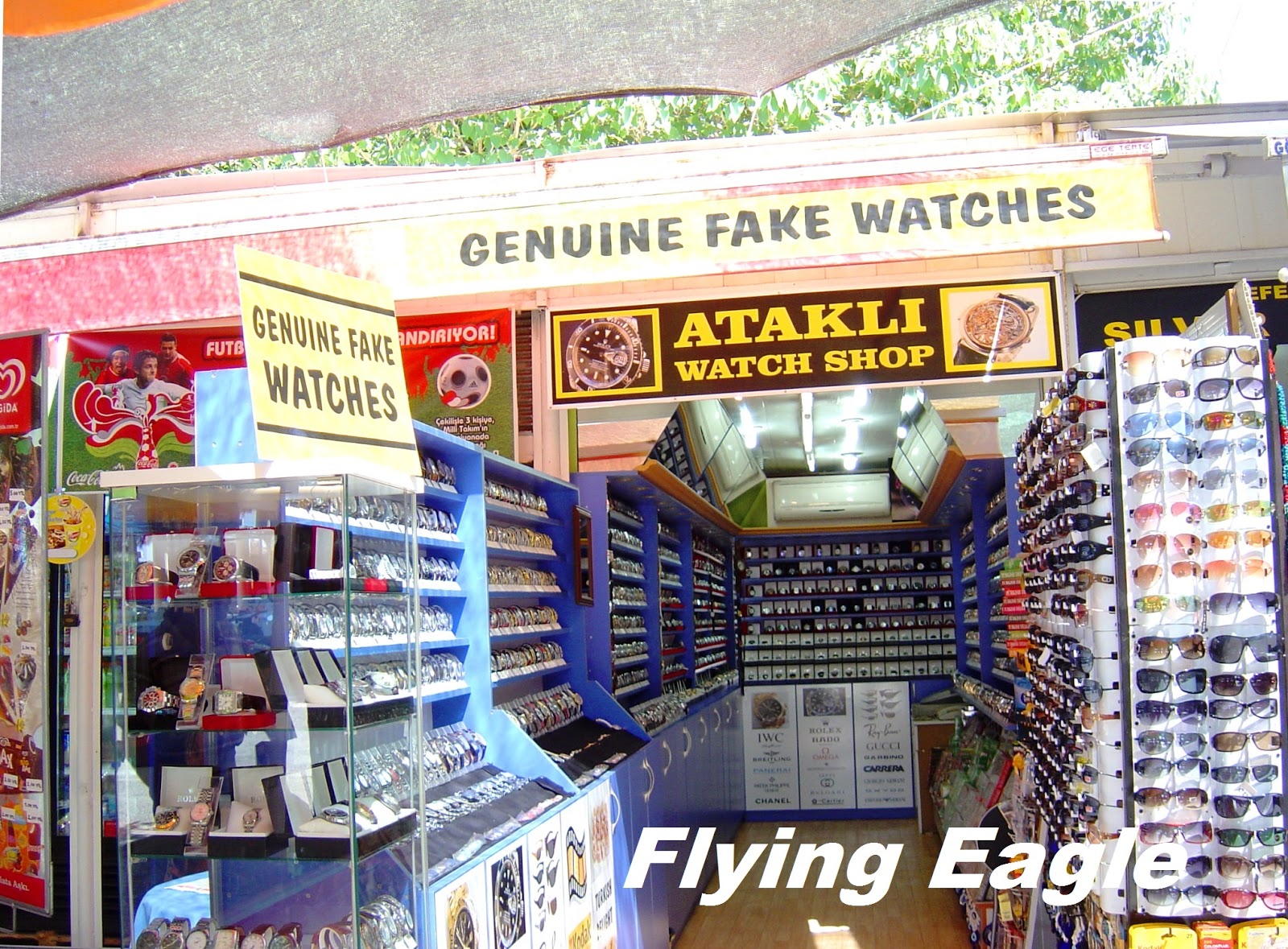 抵達港口時我們看到商家有趣的標示──真正的仿冒錶(Genuine Fake Watches),這似是而非的用詞,竟孤狗到9萬多項搜尋結果。原來土耳其有許多商店都用這樣的標示,讓遊客十分好奇。這些賣仿冒錶的商人竟還對仿得不真的手錶頗為不屑呢!