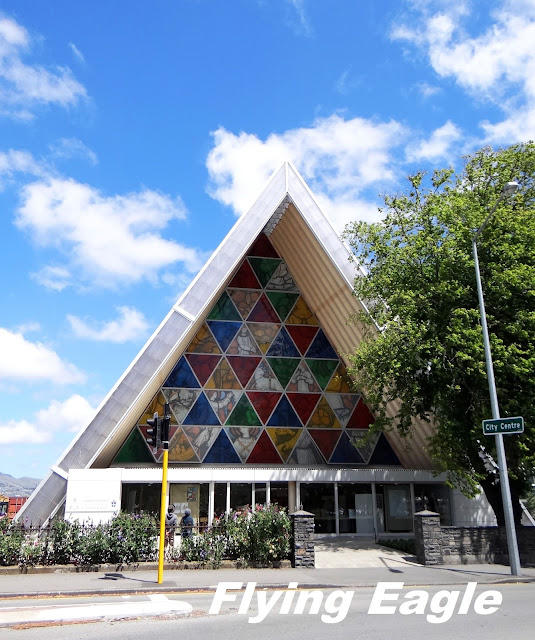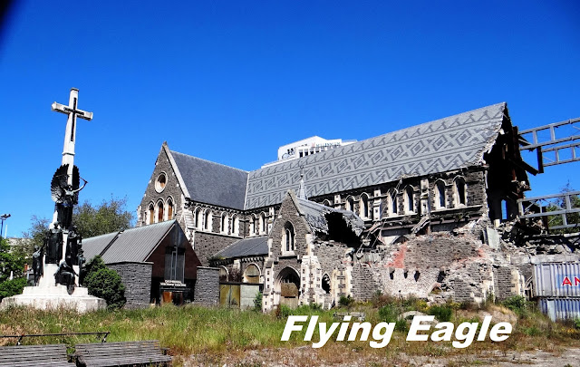 2011年的地震震垮了很多建築,施洗約翰教堂(St. John the Baptist Church)在震災中全毀,而附近的基督城座堂(Christchurch Cathedral)亦損毀嚴重。為了讓民眾有個暫時聚會的場所,施洗約翰教堂就出地,讓基督城座堂以紙筒、木材和鋼鐵蓋了座教堂,亦即著名的紙教堂(Cardboard Cathedral)。雖是供過渡時期之用,教堂還頗為美觀大方,可以容納700人。我們也前往基督城座堂和它周邊的座堂廣場(Cathedral Square),它們位居市區心臟地帶,是基督城的地標。如今座堂外觀殘破,重建之路十分漫長,不過仍可想見昔日的氣派。