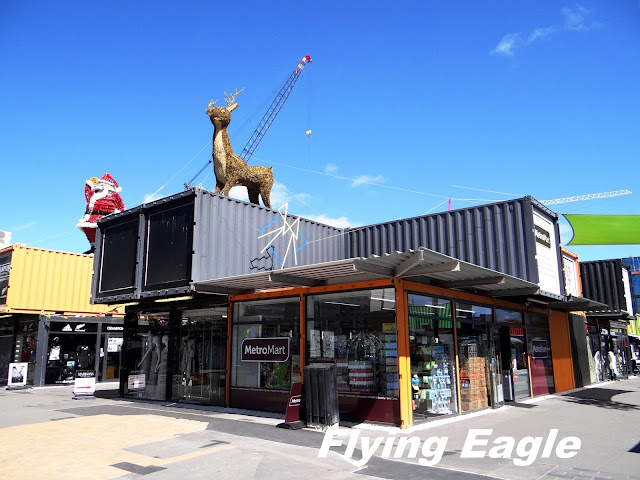 之後我們前往雅芳河,見到附近有許多彩色的貨櫃。原來這裡在地震前是購物區,災後變成色彩繽紛的貨櫃商場,叫做Re:START Mall。時值12月,有些貨櫃還有聖誕的裝飾。