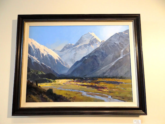 庫克山以英國航海探險家庫克船長為名,山高3,724公尺(12,218呎),是紐西蘭最高的山峰。庫克山頂長年積雪,擁有景色壯觀的冰河,每年有數十萬遊客到訪。巴士停在庫克山國家公園的隱士居飯店(Hermitage Hotel),我們用了簡便的午餐後便趕緊去賞景。這天陽光普照,是我們到紐西蘭後最暖的一天。可惜雲層很厚,遮蔽了遠山,只能從飯店陳列的畫作中一窺庫克山的模樣。在國家公園裡走走逛逛,時光很快便流逝。回程仍然是美景連連,讓人心曠神怡。我們行經不少大草原,牛兒羊兒成群。紐西蘭的人口不到5百萬,卻有3千萬隻羊,平均每人擁有6隻。綠色草原上數不清的小白點,全是羊咩咩,這該算是紐西蘭的特色景觀吧!