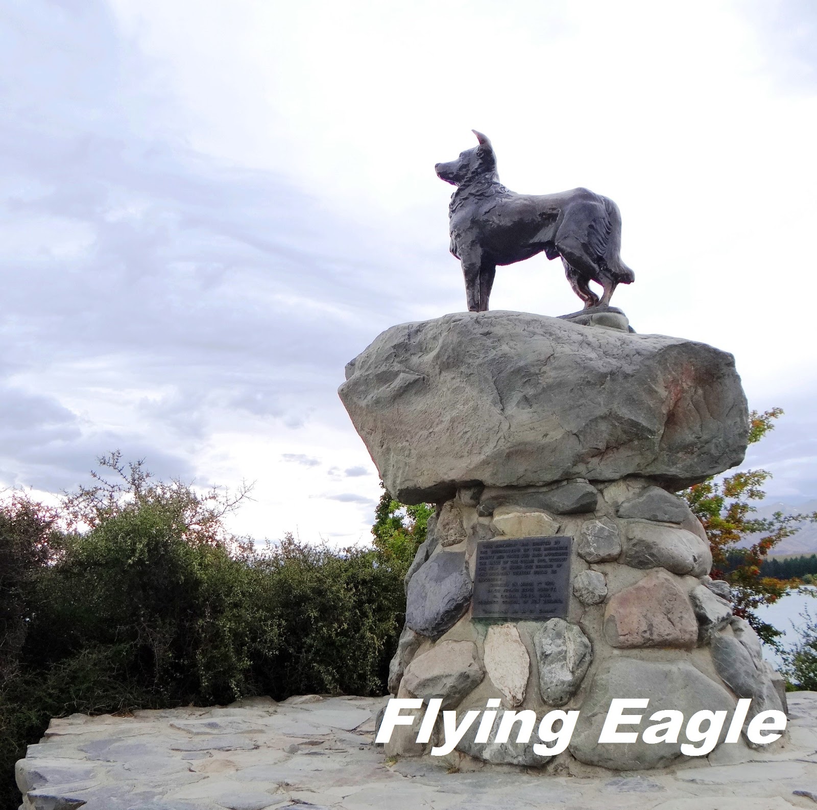 ▲牧羊犬的雕像在湖畔守望。
