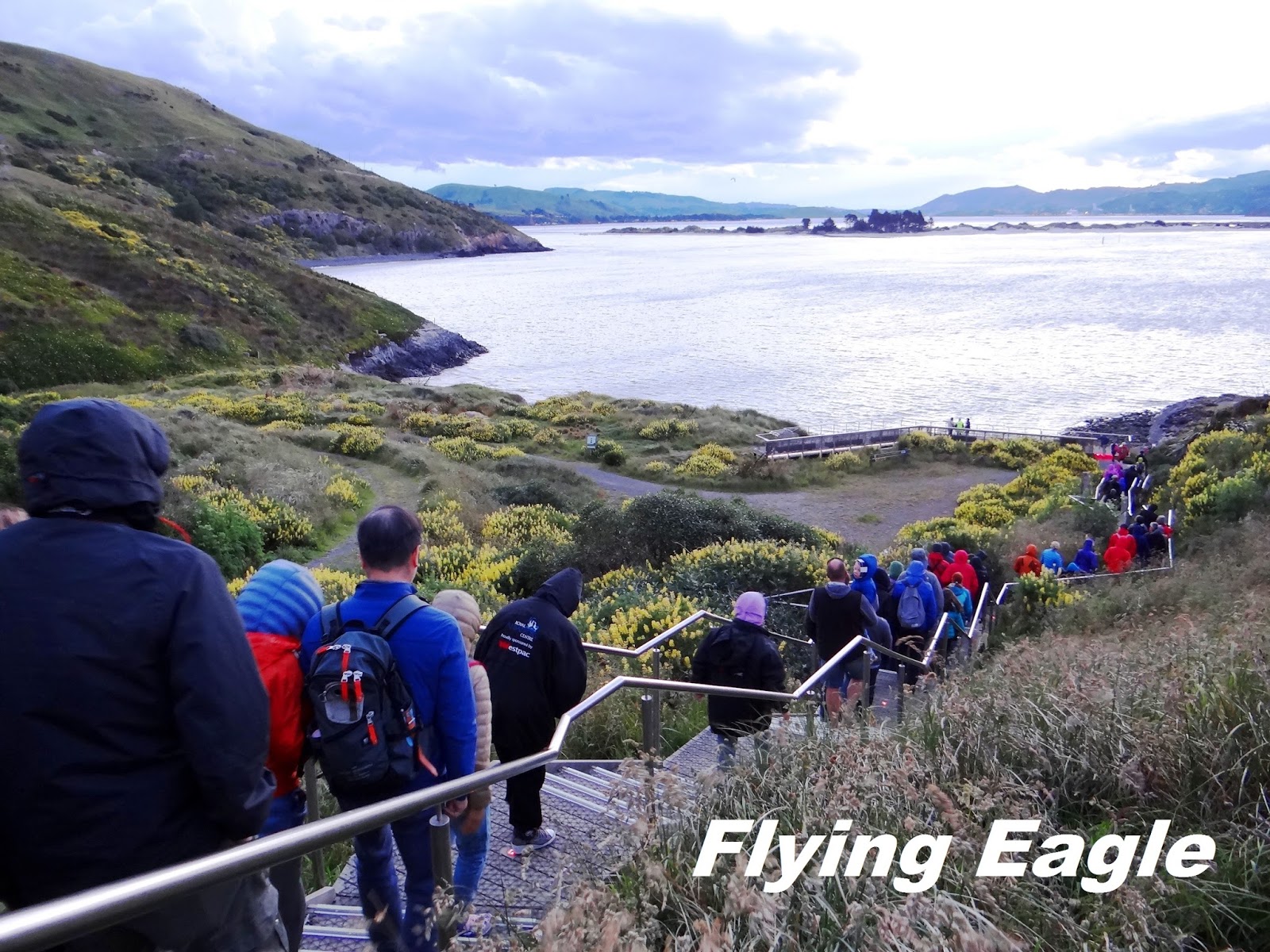 由於火車誤點,我們回到但尼丁後就狂奔往接駁車站,生恐錯過晚上的行程。賞企鵝團的小巴司機兼導遊是當地長大的年輕人,對自己的家鄉充滿熱情。他沿途很努力找尋野生的禽鳥讓我們觀賞,因此我們捕捉到高蹺鴴(Pied Stilt)和皇家琵鷺(Royal Spoonbill)的動態。皇家琵鷺有著長長的嘴,怒髮衝冠的模樣頗為逗趣。此行的目的地皇家信天翁中心(Royal Albatross Centre),是皇家信天翁的繁殖基地。信天翁習於棲息海邊,是世界最大的海洋鳥類,而且是一夫一妻制。我們對鳥類所知有限,看見漫天飛舞的鳥兒根本無法辨認那些是信天翁。碰巧遇到一對英國夫婦是專家,在他們指點下才找到幾隻。