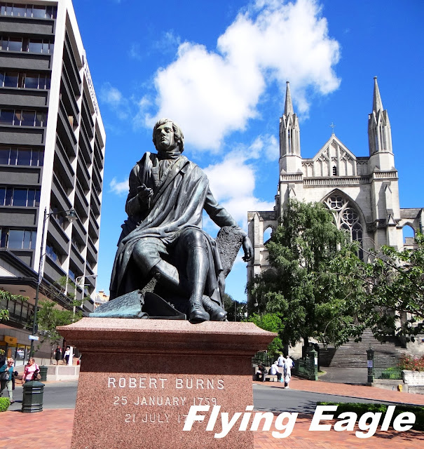 ▲蘇格蘭詩人伯恩斯的雕像位於八角廣場中央。