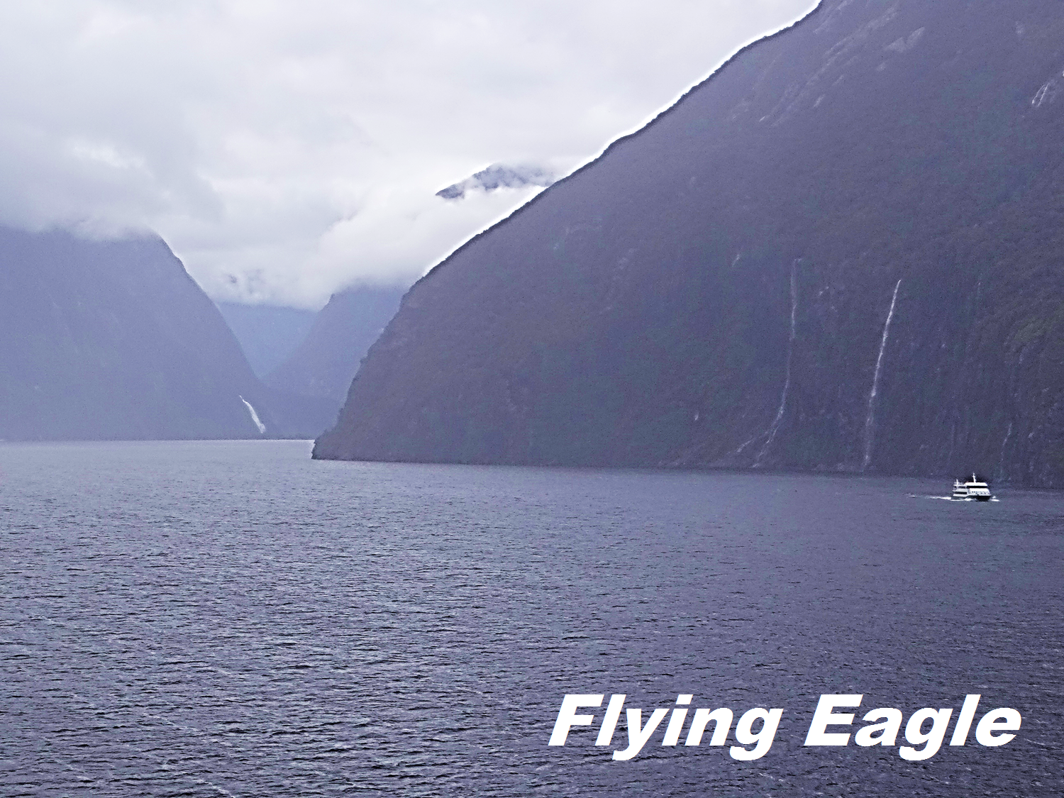遊輪抵達峽灣時,我們先到甲板上觀景。但天候不佳下起雨來,於是就回到艙房。好在我們有自己的陽台,不怕下雨,風勢強勁時亦可躲進房裡取暖。時值紐西蘭的夏天,遊輪航行的速度亦頗為緩慢,但站在室外覺得有如嚴冬。只有把帶來的保暖衣物全都往身上加,也顧不得顏色和風格是否搭配。米佛峽灣最特別之處,在於兩側山壁上有許多瀑布,有時在很短的距離內就有3-4個之多。有的瀑布自山頂流瀉而下,有的從山腰上竄出。遠望像是涓涓細流,但近觀才發現水量頗為豐沛,尤其在往來船隻的對比之下,更顯水勢浩大。