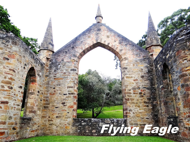 一下船我們就報名當地旅遊,前往車程約1.5小時的亞瑟港參觀。亞瑟港三面臨海,只有狹長的隘口和陸路連接。從1833年開始,英國便把重罪囚犯送到此地服刑,最多曾同時監禁千餘位犯人。監獄在1877年關閉後,這裡搖身一變成了觀光景點。它保有了不少當年的建築物和史料,是澳洲重要的歷史遺跡。我們之前在紐西蘭觀光時,有些紐西蘭人半開玩笑說澳洲人的祖先是罪犯,但紐西蘭人卻不一樣。來過亞瑟港就更加體會澳洲這部分的歷史。