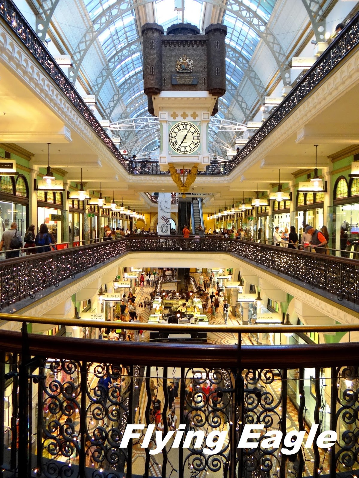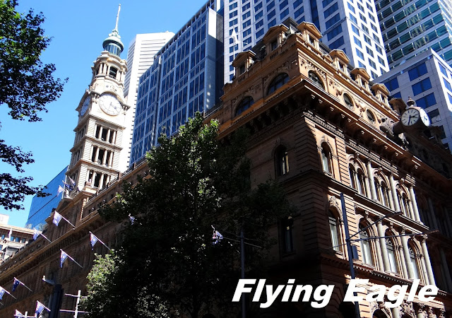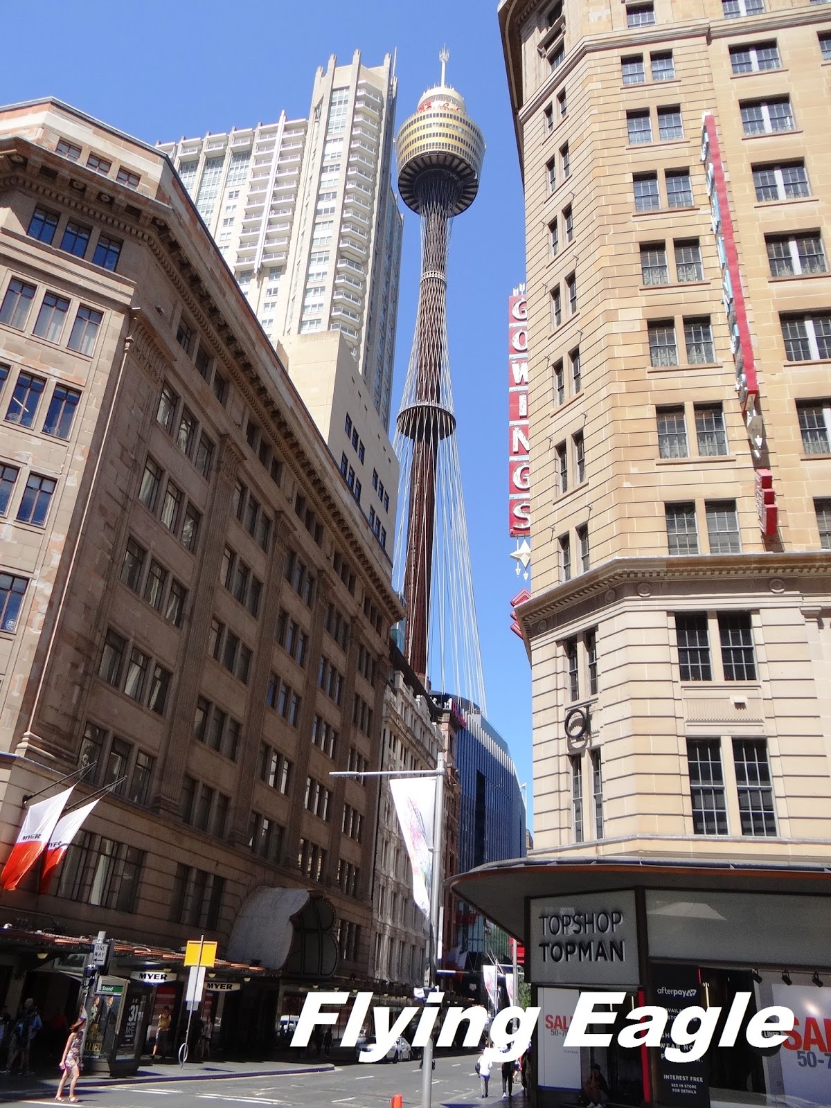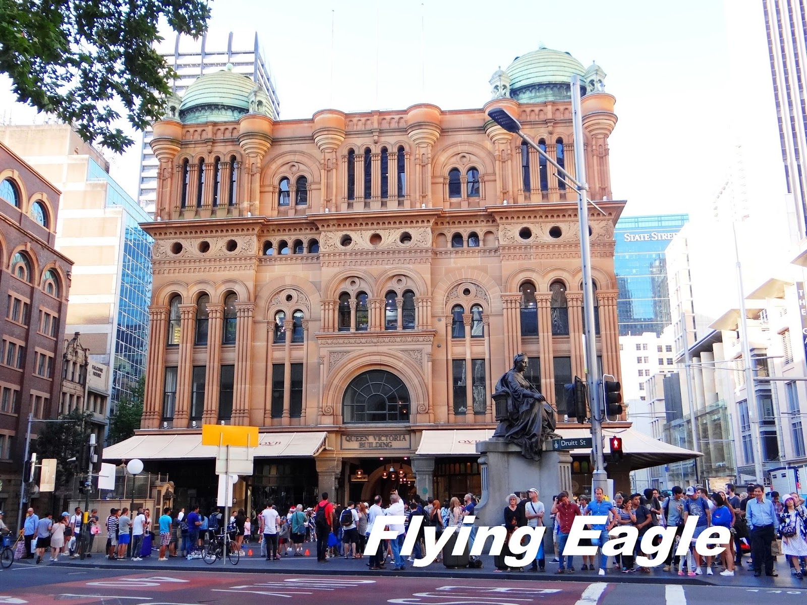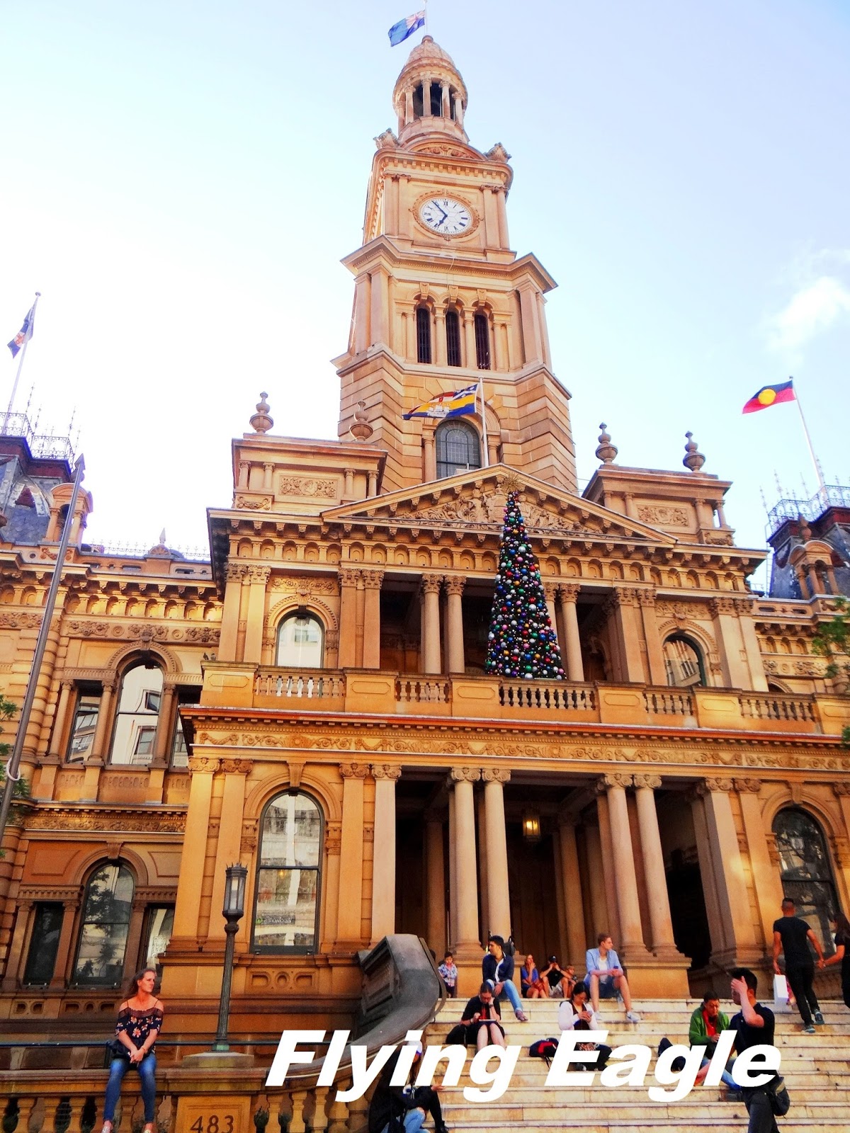 市中心有不少著名的地標,維多利亞女王大廈(Queen Victoria Building)是是十九世紀的歷史建築,外型像博物館,其實是購物中心。大廈其中一個門口還有女王雕像,俯視著往來人潮。雕像旁有人跳舞,也有許多人好奇圍觀。在雪梨常見街頭藝人,只要有少許空地,就放起震天響的音樂,開始表演,活力十足。雪梨市政廳(Sydney Town Hall)和維多利亞女王大廈隔街相望,外表古典,有著許多雕花。此時已近聖誕節,市政廳樓上陽台擺設了一棵大聖誕樹,增添了節日的氣氛。雪梨塔(Sydney Tower)是全市最高建築物,內有觀景台和旋轉餐廳。塔高309公尺(1,014呎),外型瘦削又高人一等,很難不注意到它。