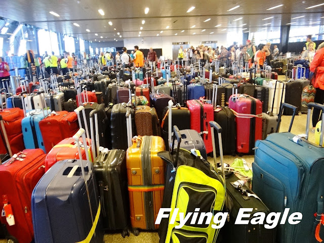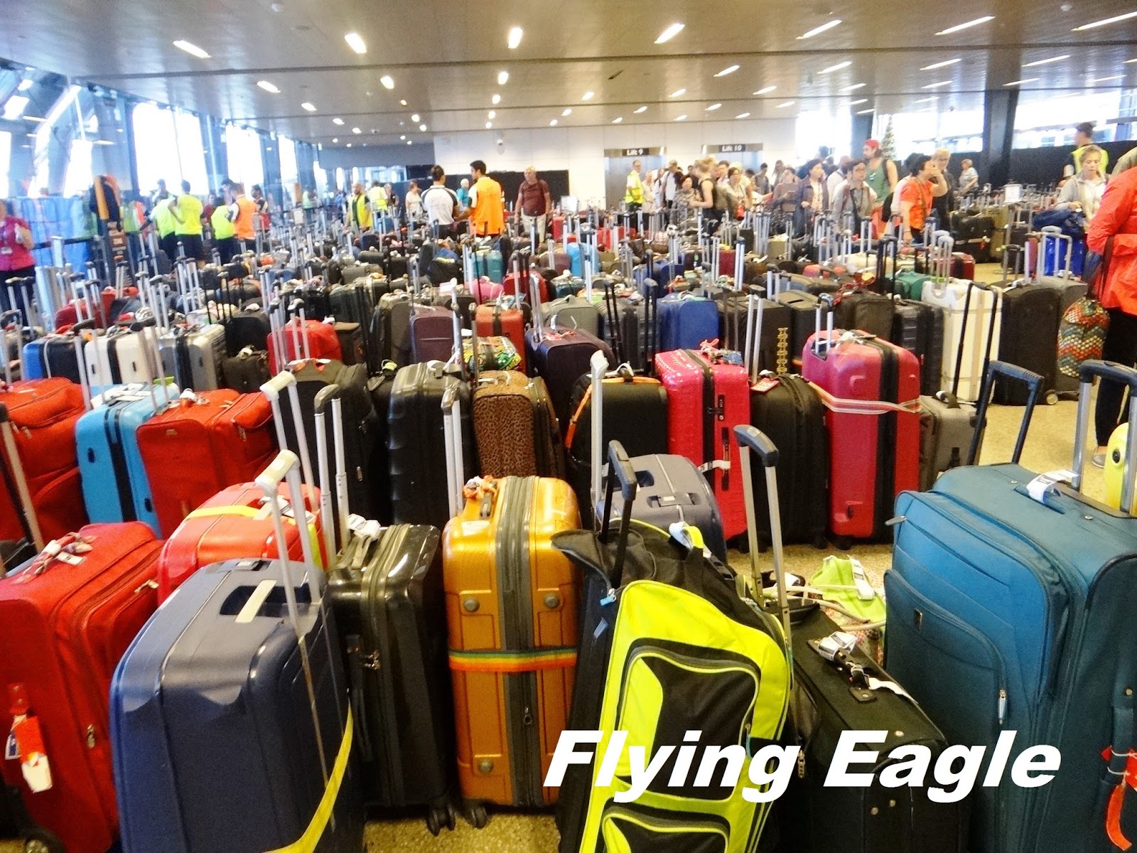 去澳紐的印象就是地廣人稀,十分天然,野生的動物悠遊在自然的環境中。是吧!那些行李擺在一起還蠻驚人的喔!近3千位遊客耶!