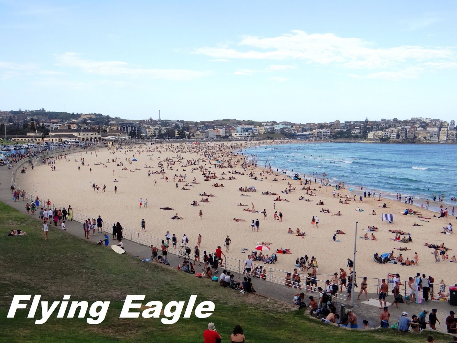 隨後我們前往邦代海灘,這海灘有些人誤譯為邦迪。邦代海灘長1公里(0.62哩),每年吸引大量弄潮兒到訪。大家在此游泳、戲水、衝浪、享受日光,我們還看到妙齡女子嫌曬得不夠,索性把比基尼上衣脫掉呢!