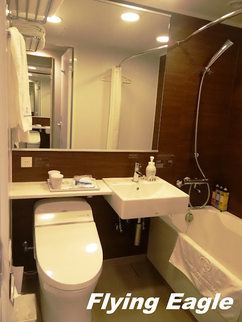 日本飯店的房間幾乎都不大~而且越是大都市的市中心~房間就越小~我去日本玩時~只有在輕井澤的哪晚~住的房間真是超大的~但是衛浴依舊很小間~~~