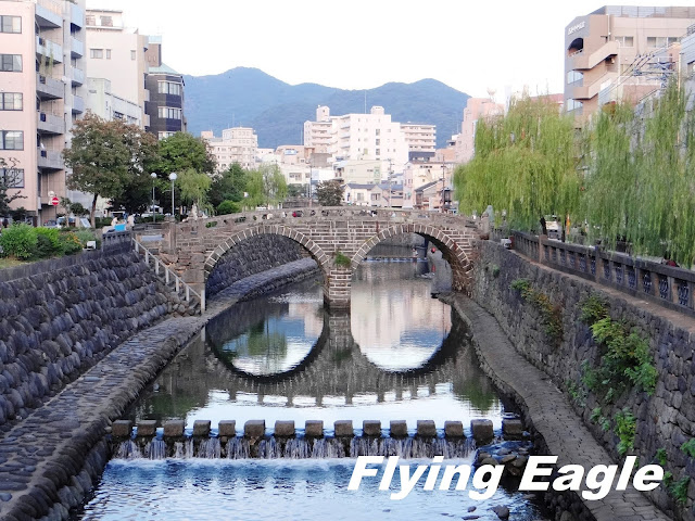 下一個景點是眼鏡橋。這座石頭雙拱橋因橋和水中倒影合在一起,看來有如眼鏡而得名。拱橋始建於1634年,被列入日本重要文化財,是知名度很高的景點。