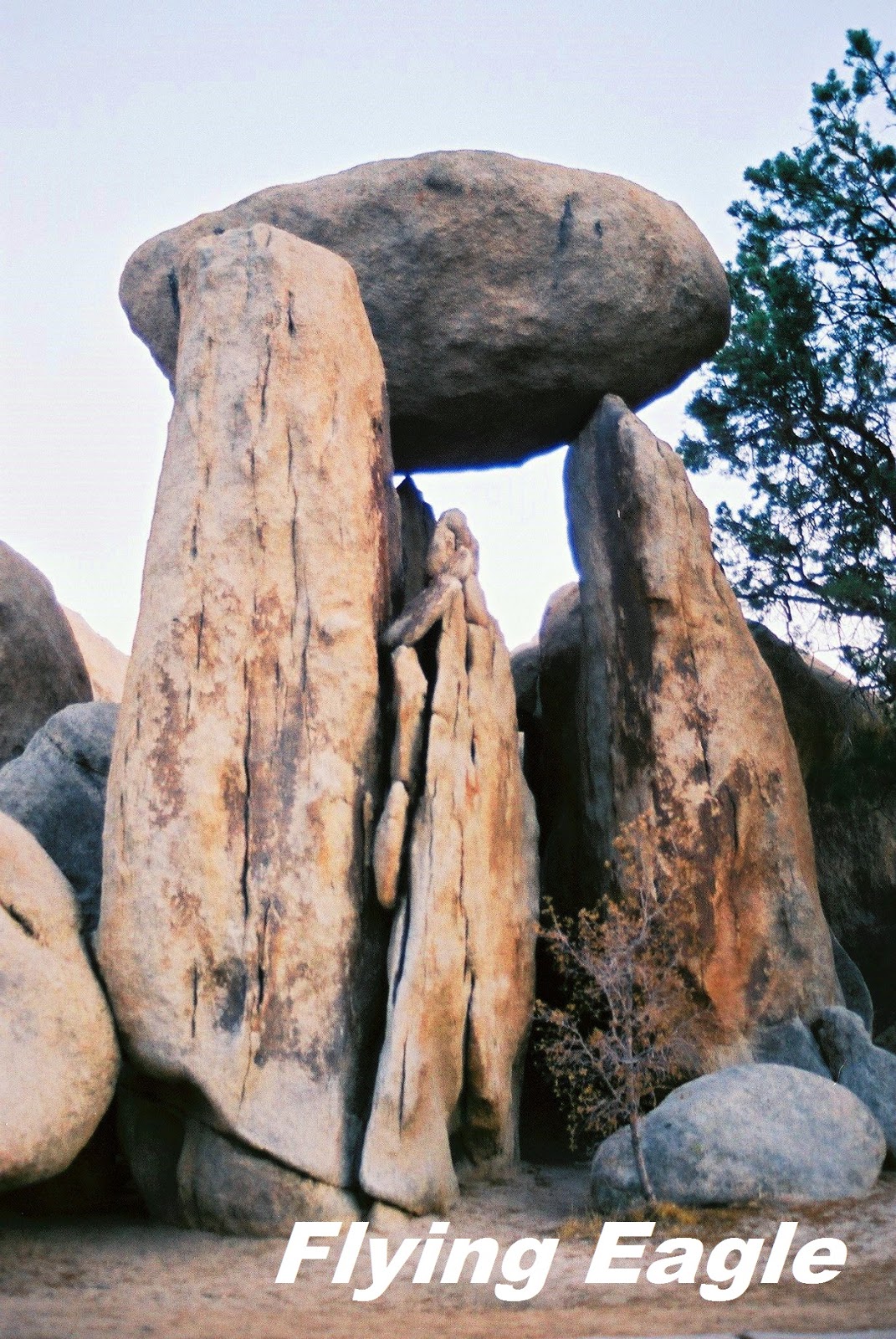 公園的形狀是南北窄、東西長,知名景點均集中在西北區。園內除了約書亞樹之外,還有許多奇形怪石,吸引愛好攀岩的人士到訪。說到岩石,我們在猶大州的幾個國家公園也看了不少,有的粗獷,有的秀美。但這裡的岩石不但奇形怪狀,而且還有股詭異的氣氛,讓人覺得彷彿到了另一個時空。很多公園都為奇石命名,但約書亞樹國家公園的奇石卻多半無名,由得大家各憑想像,發揮創意。甫進入巨石區(Jumbo Rocks),就看到形狀特異的岩石,說它們像帶著疤痕的金字塔也行,但同時也像包好的粽子。沿著步道走,奇石不斷,驚喜連連。骷髏頭岩(Skull Rock)名字取得很貼切,也是公園必訪的景點。眼部的兩個窟窿、鼻骨、甚至眉骨的部位還微微隆起,實在是鬼斧神工!