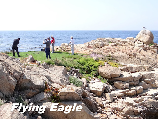 穿過閘門,正式進入17哩路的範圍,主要景點都清楚標示於社區的地圖上。我們看到有人在海邊小小的草地上打高爾夫球,原來他們要把球打到一水之隔的另一塊草地,實在有點難度。鳥岩(Bird Rock)是17哩路上的著名景點,鳥群、海獅和海豹都在此聚集。其實附近的岩石都是如此,只不過要留心才可以看見。