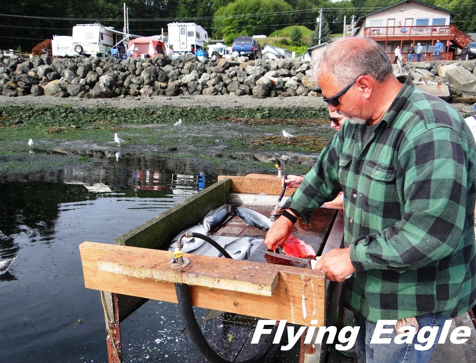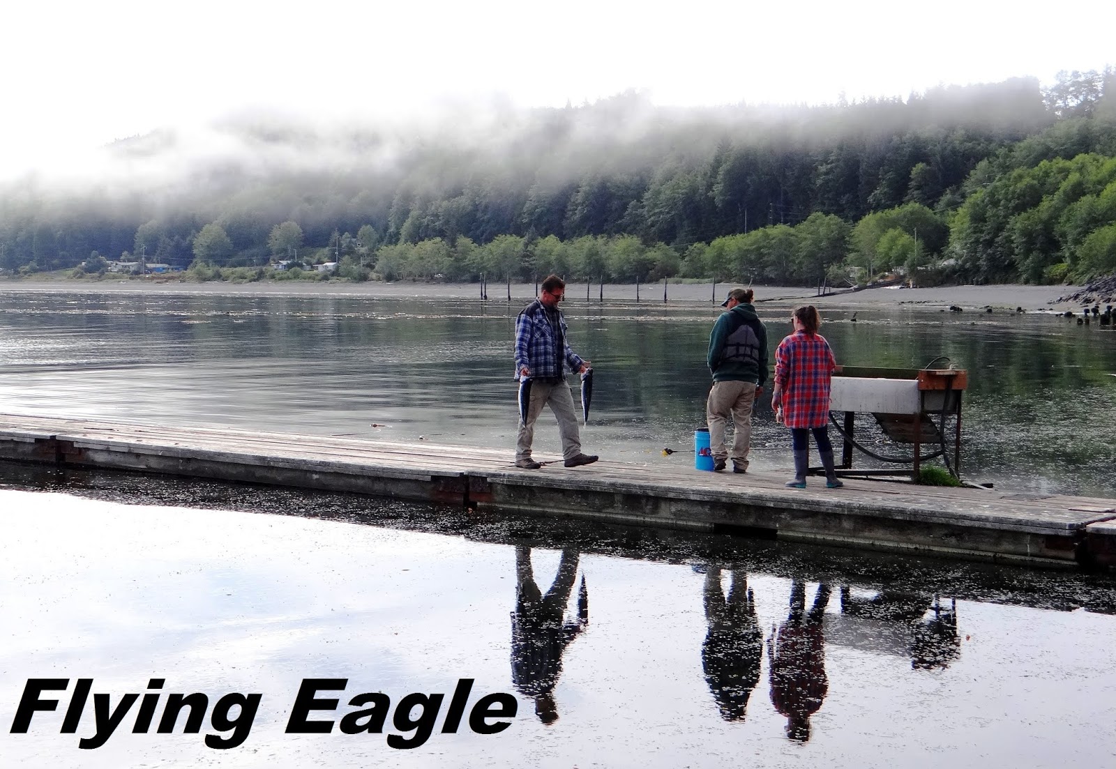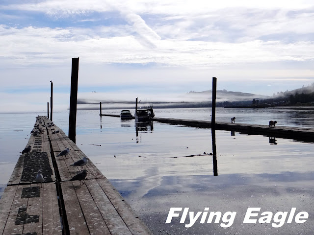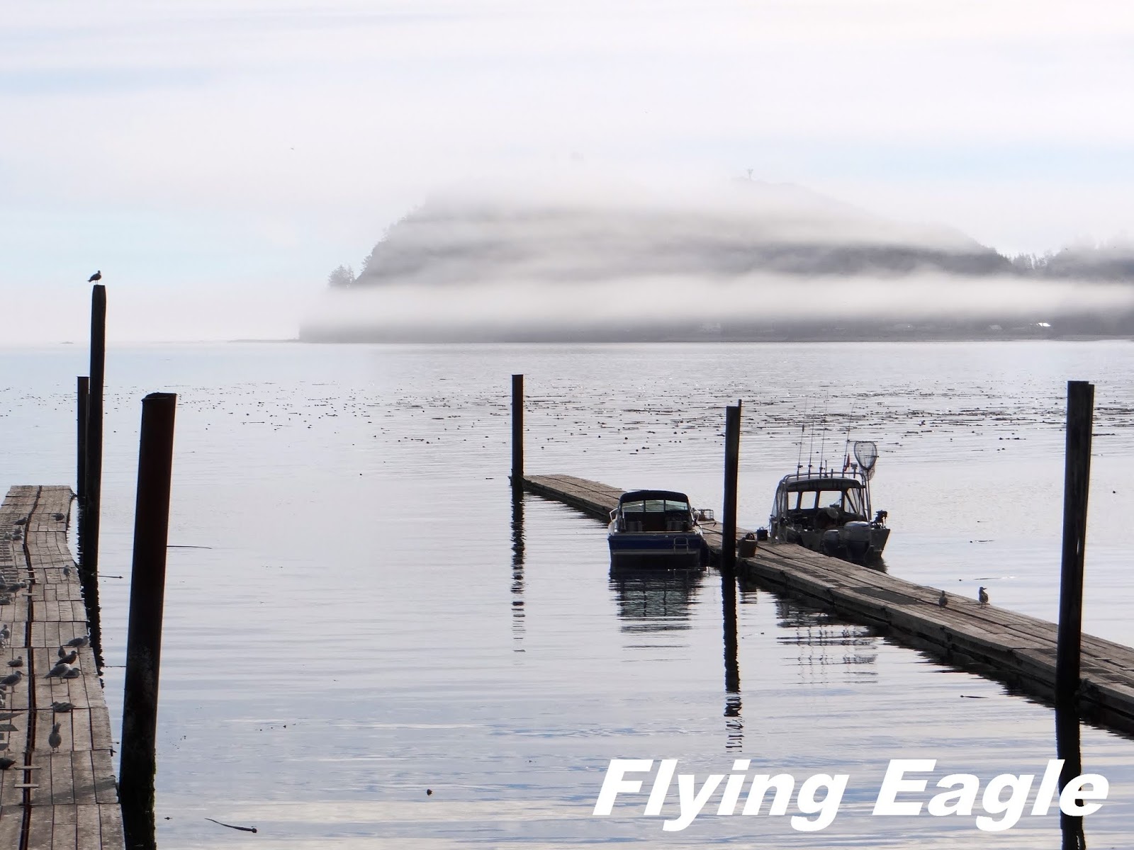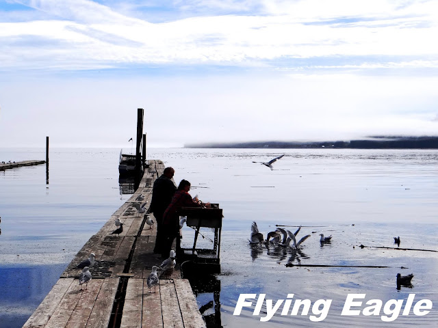 翌日清晨,Sekiu籠罩在霧氣中,有種朦朧的美感。此時海面無波,萬籟俱靜。木棧道向海中延伸,一條棧道上有兩隻狗悠悠踱步,另一條則有眾多鳥兒棲息,彷彿和狗兒分庭抗禮。一位男士手上拎著兩條鮮魚,緩緩走向岸邊。看當地人殺魚是難得的經歷,他們身手俐落,兩三下就切除了頭尾、內臟、骨頭,剩下薄薄的魚肉。不要的部分順手往海裡一扔,鵠候多時的海鳥便一擁而上,品嘗當日最鮮的滋味,得來全不費工夫。