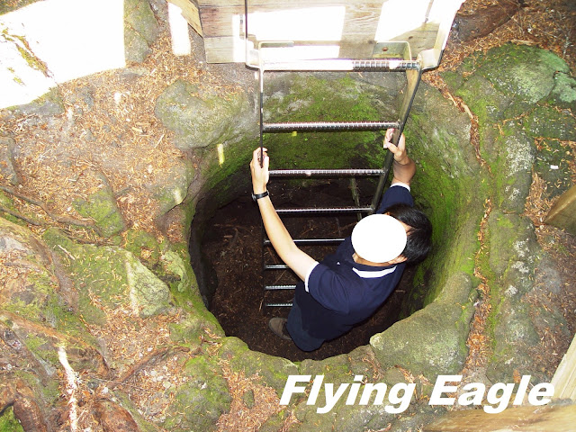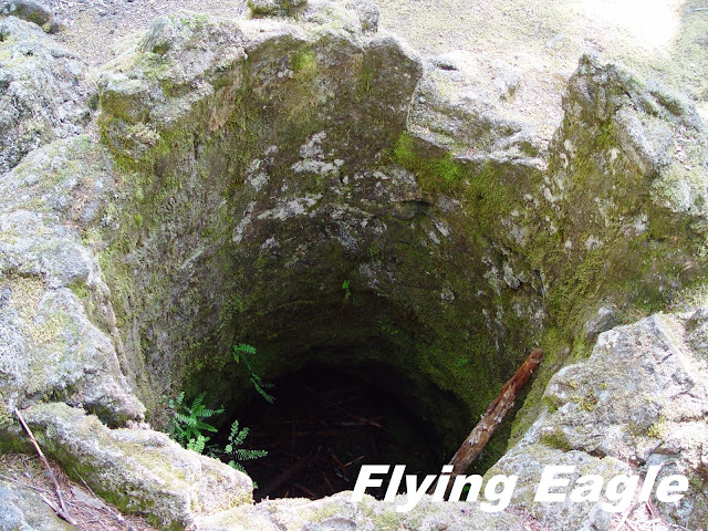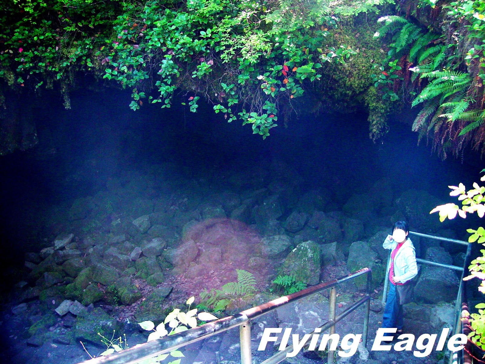 我們入紀念區後逕赴猿猴洞穴(Ape Cave),這裡的熔岩通道長2.5哩 (約4公里),為北美第三長。離洞穴不遠處,有一些被瞬間冷卻的熔岩包覆的樹幹,樹幹中空形成通道,有的甚至還架設梯子讓遊客入內一窺究竟。我們也爬進去滿足一下好奇心,通道內其實黑壓壓的空無一物。