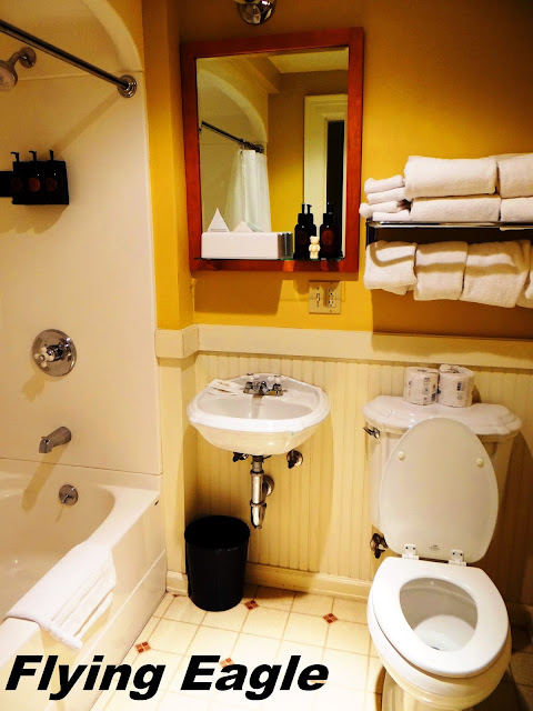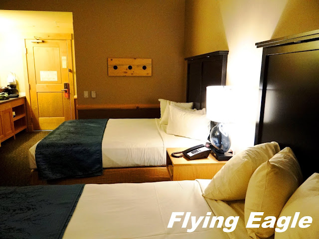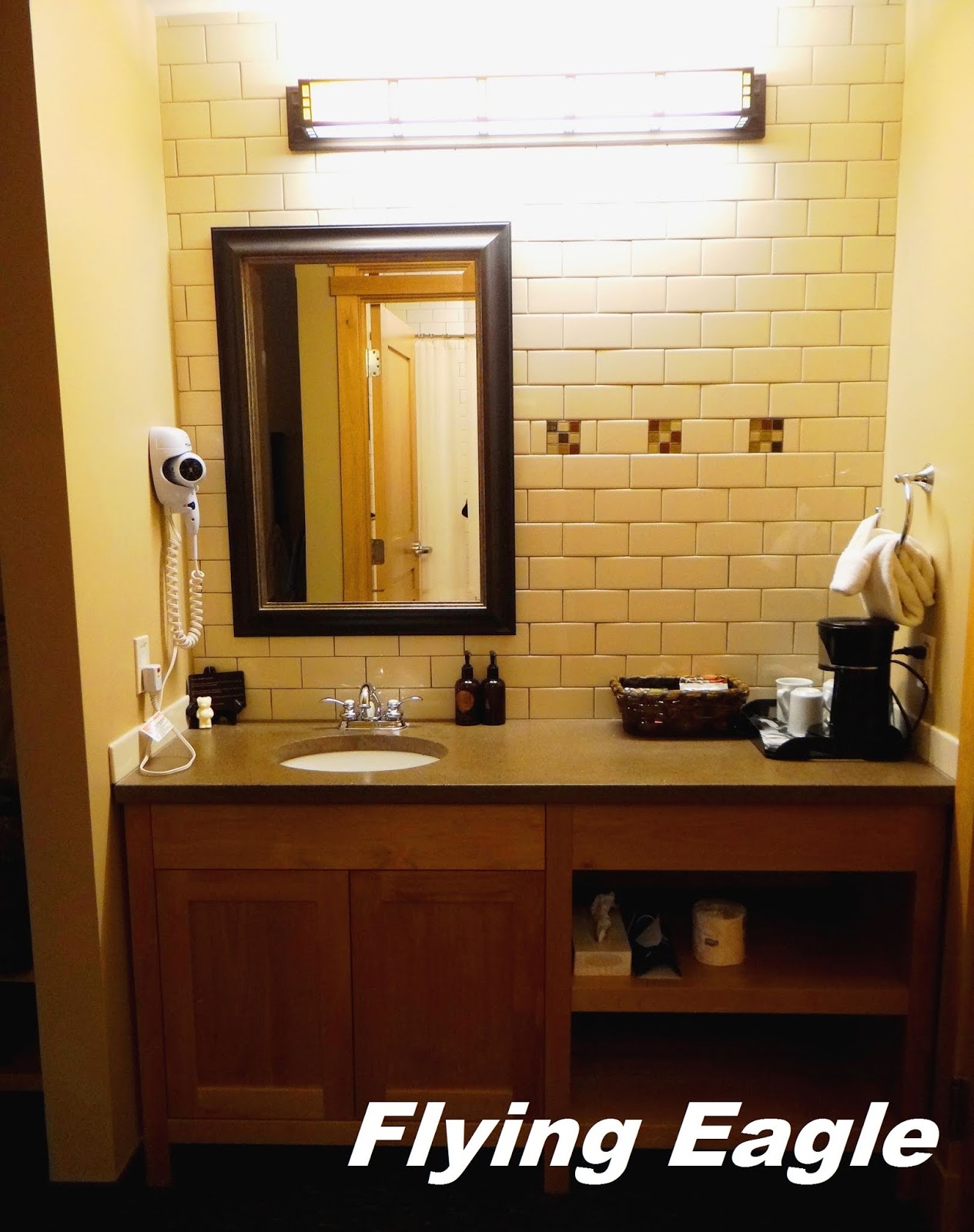 峽谷小屋於2017年才重新開幕,設備較新,空間也較寬敞。洗手檯在浴室外面,水槽旁還放了一隻肥皂小熊,很有黃石公園的特色。而且每天清理房間後,都會放一隻新的。不過管理公司員工訓練得不好,有一天忘記整理房間,後來發現並非偶發事件,別的房間也有同樣情形。住房不包上網,而且上網所費不貲,我們聽到住客抱怨,付費仍然上不了網。