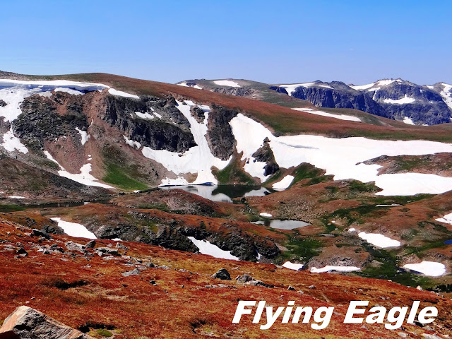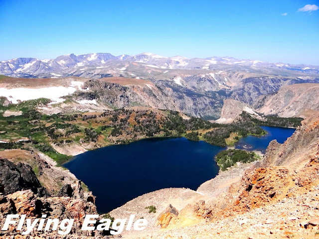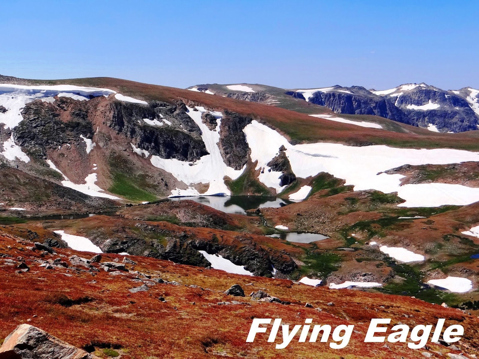 黃石佔地廣闊,有五個入口。我們此次一行四人由蒙大拿往懷俄明,從東北角進入公園。我們全部的入口都走過,相較之下這條路沿途的風景最美,無怪乎有人稱之為全美最美不勝收的路。道路蜿蜒往上,高山多處有積雪,還有冰河湖。熊牙隘口山頂(Beartooth Pass Summit)距兩州邊界不遠,高10,947 呎 (3,337 公尺),我們費了一番工夫才在層層山巒中找到那顆熊牙。