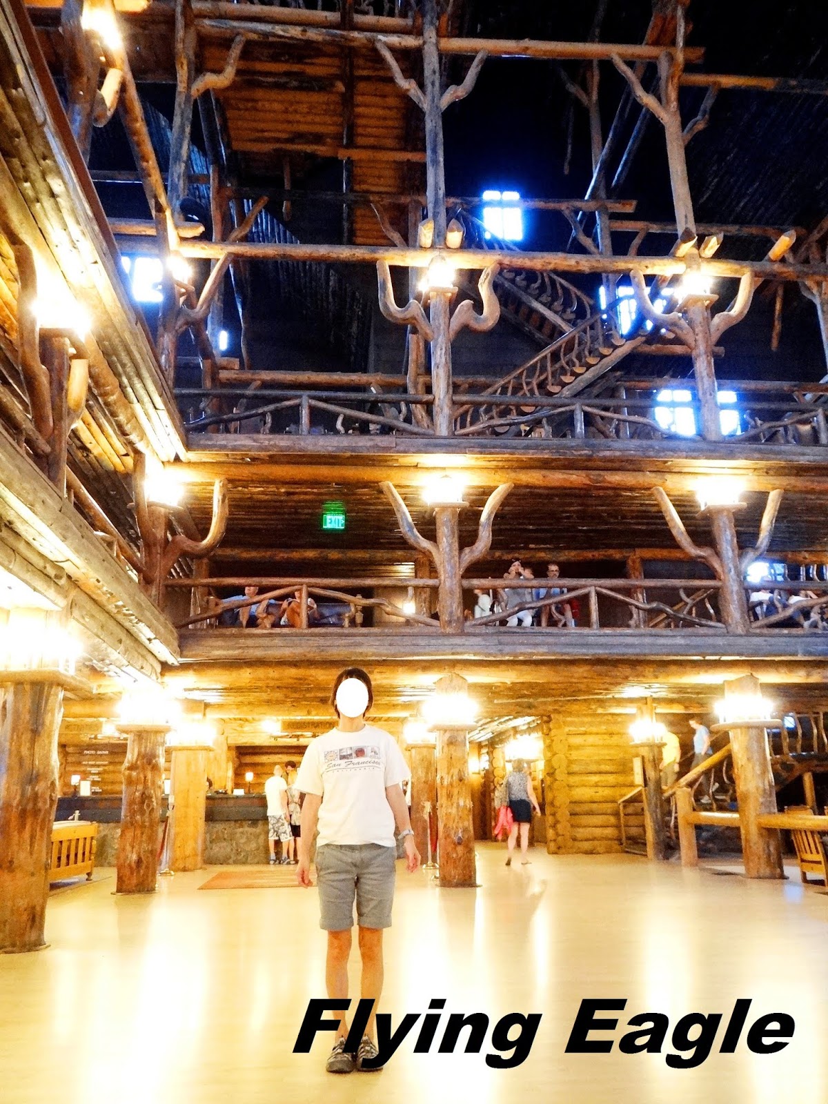 老忠實旅館是全球最大原木旅館,但其實我查到有的資料說它是全球最大的原木建築物。既然只是有人說,我還是寫得保守一點。從大廳看,那些撐起樓層的原木柱,好像一株株的仙人掌喔!很難想像百年老木還這麼穩固!