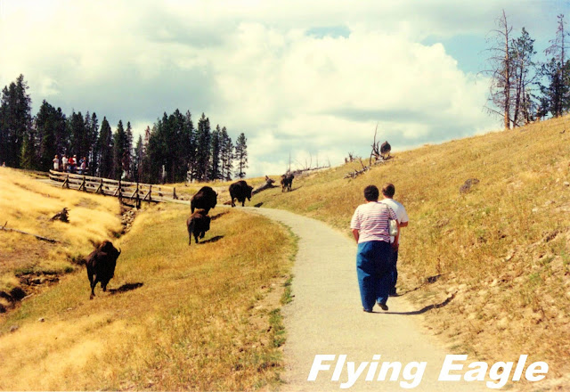 照片看來近,有時是長鏡頭拍的。黃石的野生動物很悠遊自在,對遊客見怪不怪,很習慣的樣子。基本上人不犯牠們,牠們也不犯人。不過妳說得對,還是要注意安全。如果附近人少,我們都保持相當的距離。