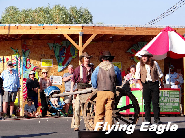 ▲牛仔打扮的演員正上演短劇。