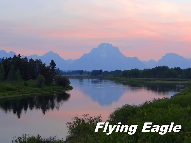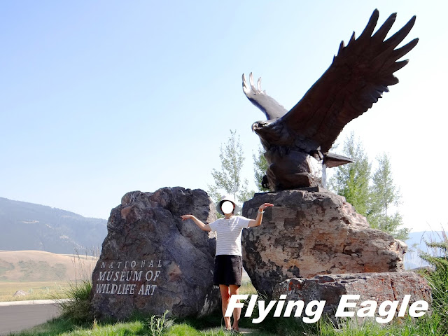 傑克森和大提頓公園之間,有座野生動物藝術博物館(National Museum of Wildlife Art)。收藏了數千件以野生動物為題材的藝術品。我們沒有入館參觀,但單是館外的陳列品即已讓人嘆為觀止。有的雕塑應是依動物實際體型製作,栩栩如生。也有的要發揮想像力,令人會心一笑。傍晚時我們到了蛇河旁的牛軛彎(Oxbow Bend),這是欣賞日落的好地點。回到傑克森湖旅館也看到同樣的景致,只不過視野更遼闊,呈現不同的美感。