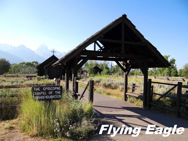 搭乘回程的船回到珍妮湖遊客中心後,我們沿著大路往南,來到耶穌變像教堂(Chapel of the Transfiguration),教堂的名稱來自新約聖經的記載:「耶穌和門徒登上高山,耶穌的面容和衣服發光。有一朵雲彩遮蓋他們,又有聲音從雲彩裡出來說,這是我的愛子,我所喜悅的,你們要聽祂。」教堂建於1925年,比大提頓國家公園成立還早。堂內的窗戶把提頓山脈的大教堂群框住,就像一幅畫。教堂名列於國家史蹟名錄(National Register of Historic Places),前總統卡特和柯林頓都曾到訪。