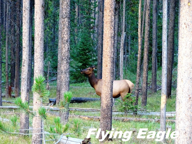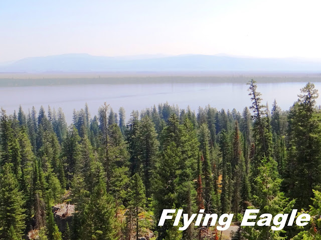 在傍晚時分我們到達信號山(Signal Mountain),它和提頓山脈沒有關連,孤伶伶地盤踞在傑克森湖東南角。循著信號山路(Signal Mountain Road)可直達山頂,登高可遠望遼闊的景象。遠遠看到蛇河,多年前我們曾看過河中有遊船。同樣也是多年以前,我們在信號山路的林間看到一隻熊,所以此次來回的路上都睜大了雙眼,東張西望,可惜一無所獲。倒是下山後往住處的途中,意外遇見一群鹿,總算有點收穫。