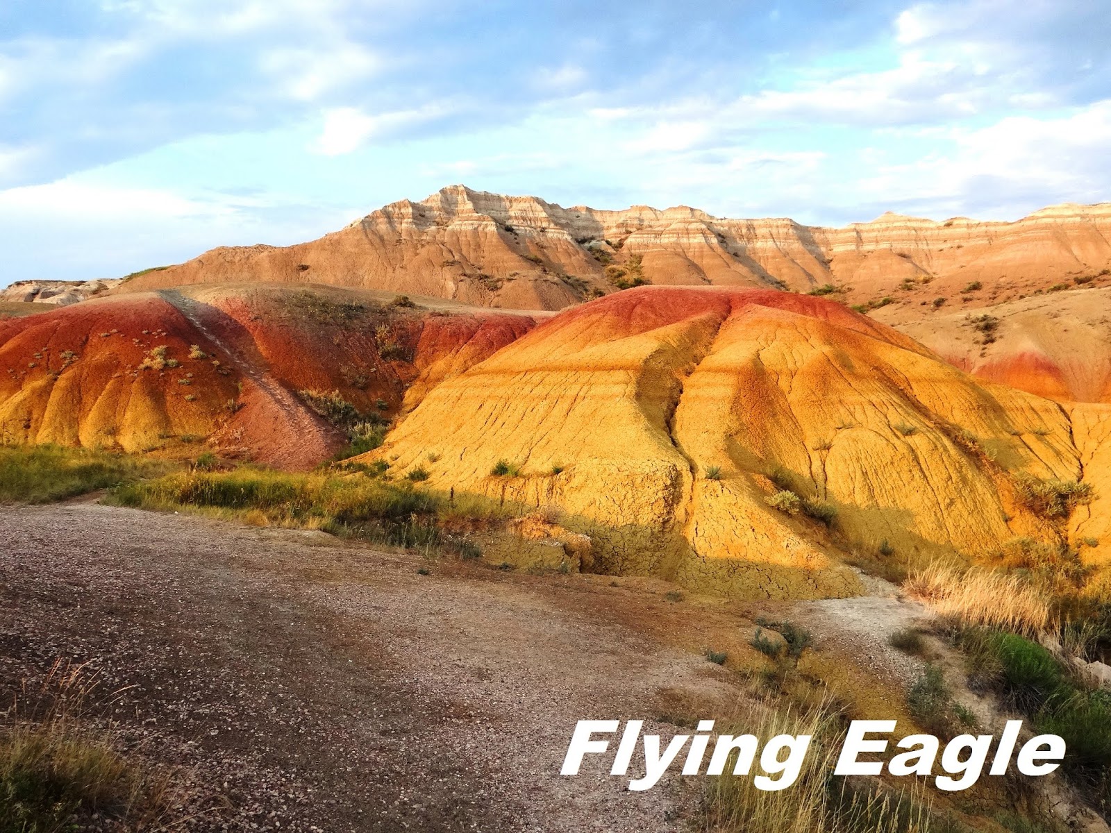 家園眺望點(Homestead Overlook)的景觀看到的不再是無盡的惡地,而是草原中夾雜著惡地地形。早期由東往西的拓荒者在此建立家園,可惜仍不敵乾旱的天候和貧瘠的土壤,紛紛走避他方。撇開拓荒者的辛酸史,在傍晚的陽光下,這裡其實挺美的。黃丘眺望點(Yellow Mounds Overlook)是公園中非常獨特的景點,一座座的山丘跳脫了之前的惡地景觀的色調。它們雖名為黃丘,但有紅、白、黃、褐等多重色澤,其實更像是彩虹。