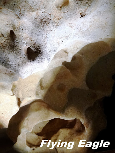 導覽共需不到1.5小時,但有七百多級階梯,其中有些是直上直下,走起來有點難度。洞內景觀以爆米花(Popcorn)結構為主,長成一粒粒、一坨坨的,甚至佈滿整個石壁。它們乍看之下像葡萄,有的則像珊瑚礁。偶爾也看到鐘乳石岩洞中水母形狀的結構,但風穴中常見的Boxwork,在此似乎較少見。最特別的是行程尾聲一個長條形、紅白相間的結構,它的色澤和形狀讓人想到培根。可惜我們照得不清楚,網上找到拍得較清楚的照片,一併放在這裡。