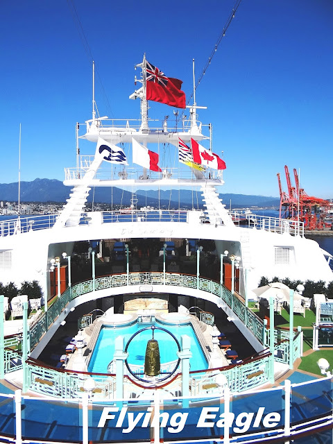 期待已久的這一天終於來臨,我們總算要上遊輪啦!寫到這裡想起蔡琴多年前的一首歌--「遠颺的夢舟」。歌詞是說有一個人終於啟程,實現他遨遊世界的夢想,但同時心裡又捨不得故鄉。這一段就借用歌詞中的「偎水遠颺」為題吧!