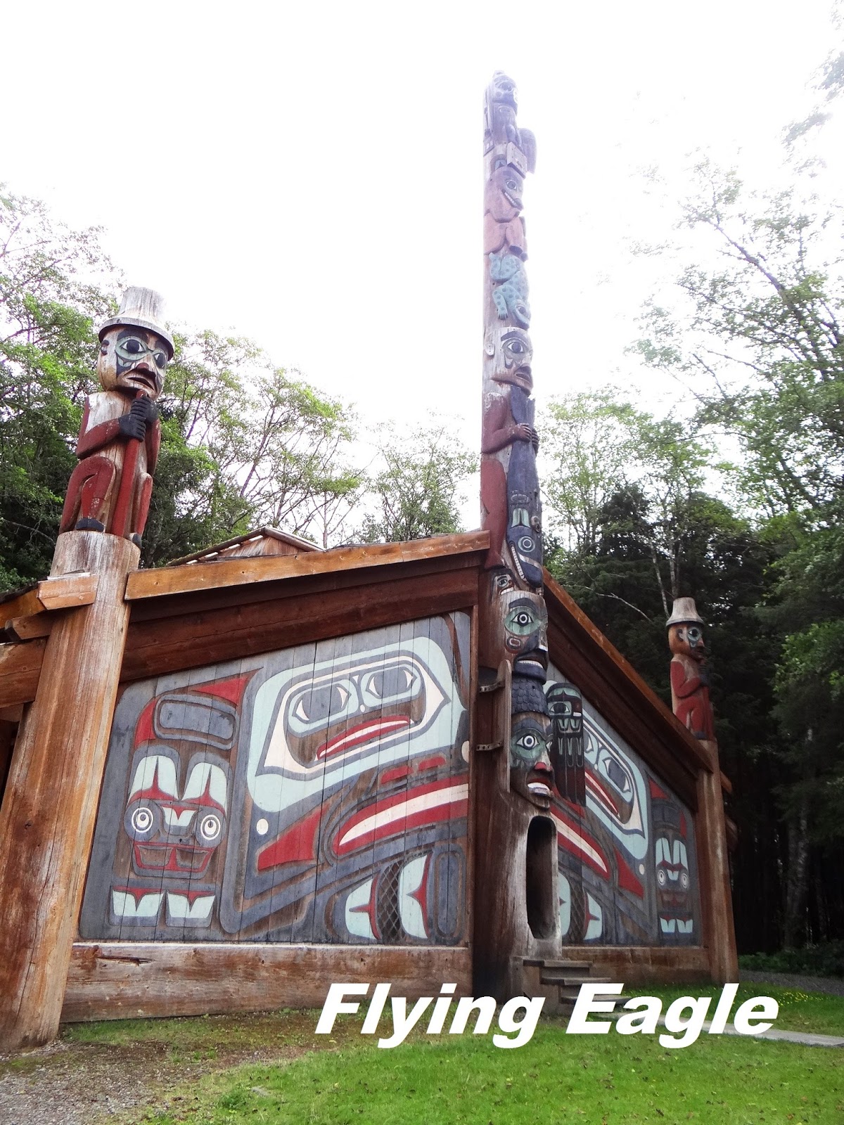 我們之後又去了圖騰公園(Totem Bight State Historical Park),這個佔地33英畝的公園,是美國政府為了保存印第安文化而設立的,當中的圖騰柱(Totem Poles)有的是修復自廢棄的圖騰柱, 有的則是仿照原始圖騰柱而加以複製。圖騰柱往往刻著動植物,是印第安人部族的象徵。