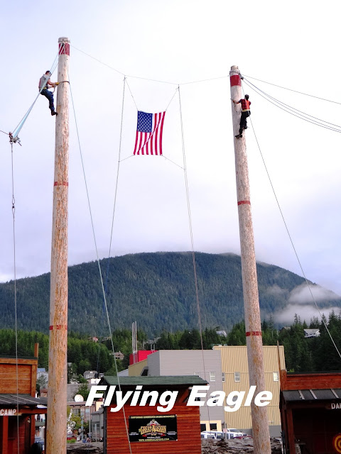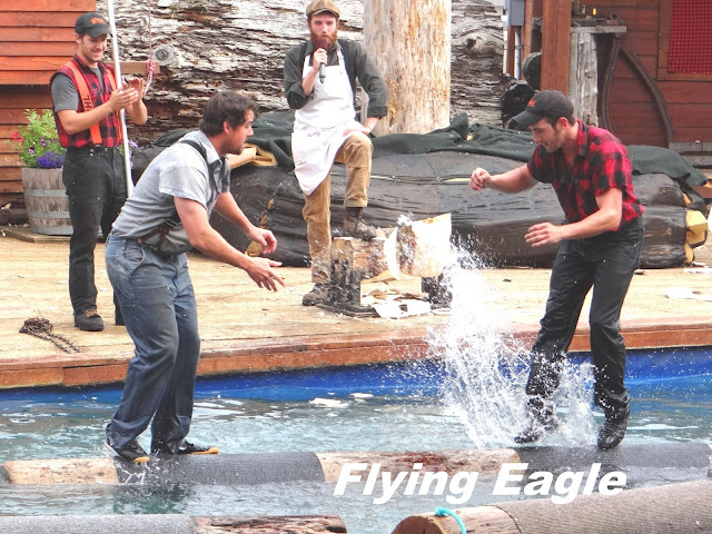阿拉斯加是美國第一大州,即使把它切對半都還比以大著稱的德州要大。它的自然資源包括石油、金礦、漁業和伐木業,所以伐木表演可以讓遊客體會阿拉斯加人如何以伐木維生。表演的人分為兩隊,互相競爭哪一隊伐木較快、爬柱較迅速和得以在水中圓木上屹立較久。比賽當然是以逗趣的方式進行,頗為活潑生動。