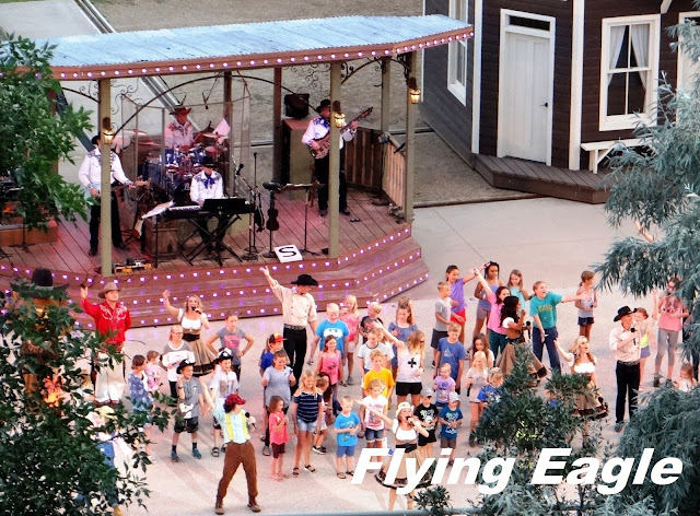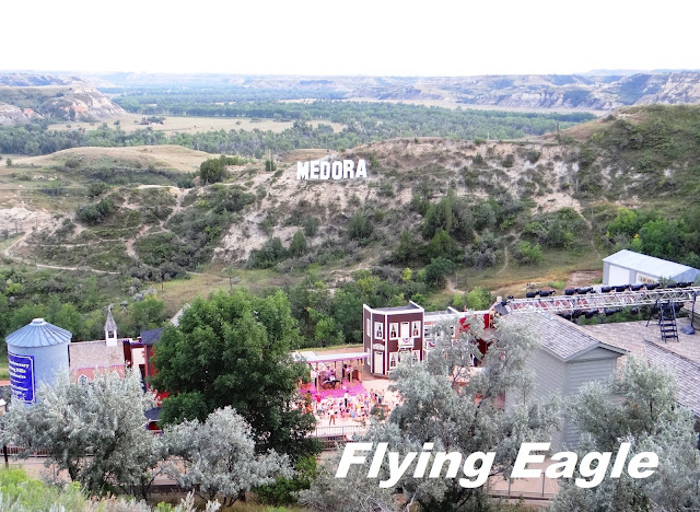 我們當晚住宿在南區旁邊的梅多拉(Medora)。這小鎮雖然人口僅有一百人,在這一帶卻赫赫有名。每年夏天在這裡的露天劇場都有音樂劇上演,演員們每晚載歌載舞把這區的拓荒史演出來。音樂劇的傳統始於1965年,歷久不衰,每年吸引十多萬名觀眾。從高處看到,小鎮的名字用白色的粗體字掛在山上,讓人想起好萊塢。