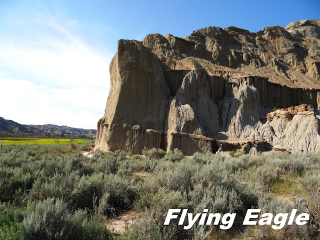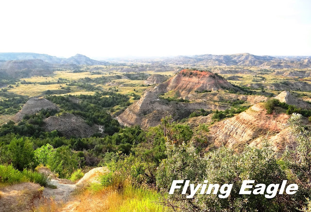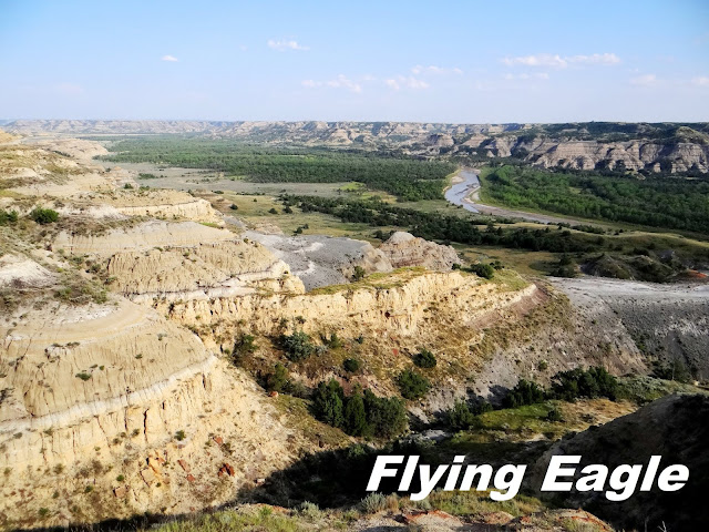 我們先前往北區,這裡有許多充滿皺摺的岩石和大片的草原,草原上還有許多美洲野牛。我們沿著全長14哩的Scenic Drive,前往牛軛眺望點(Oxbow Overlook)。在眺望點居高臨下,看見惡地之中夾著大片翠綠,而貫穿整個公園的小密蘇里河(Little Missouri River)就在不遠的前方。回程從河彎眺望點(River Bend Overlook)同樣看到小密蘇里河,而惡地地形更近在咫尺,山壁的皺摺十分清晰。