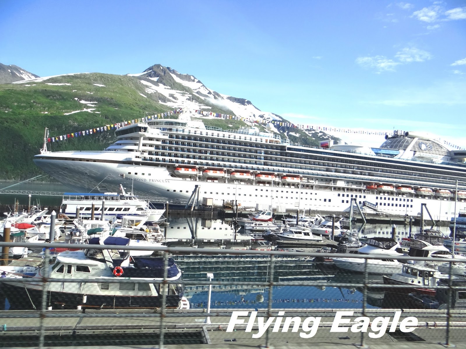 我們在Whittier下船,搭乘前往安克拉治的巴士,車程約一個多小時。巴士行經一個很特別的隧道,叫做Whittier Tunnel。這是北美公路上,供火車和汽車共用的隧道中最長的一條,長達13,300英呎(4,100公尺)。它只有一線道,由於只能單向行車,所以每天的時刻表一早就定好了,什麼時間是讓哪個方向的車通行。而且為了方便車輛等候,隧道的兩端都預備很大的空地,各可容納450輛車排隊。在往安克拉治的車程中,沿途景色美不勝收,而且天氣晴朗,叫湖光山色都分外明亮。尤其是Portage Lake一帶的景致,讓人驚艷不已,值得佇留片刻細細品味。