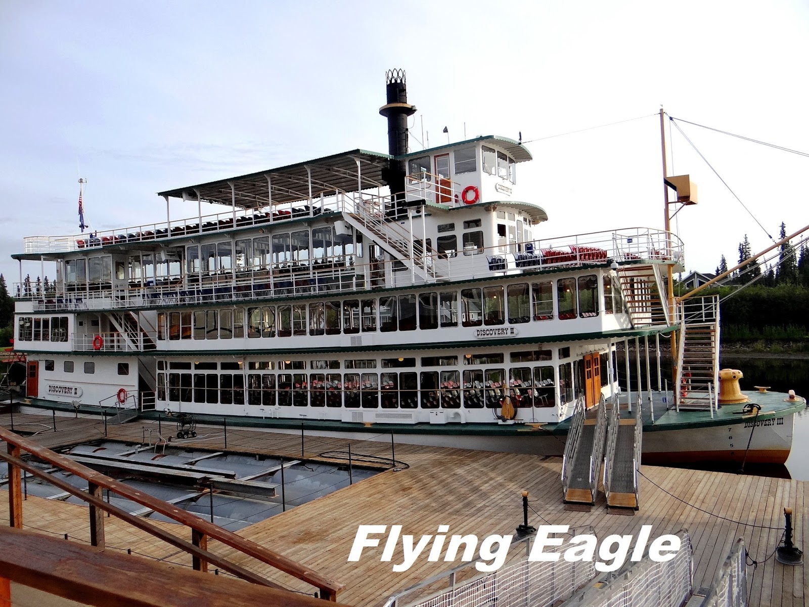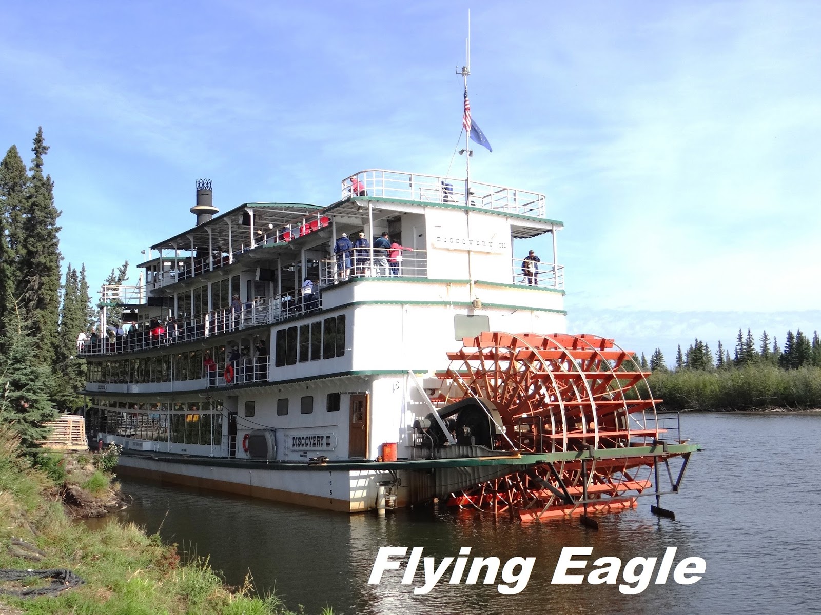 我們繼續在Fairbanks的行程,今天要搭乘江輪飽覽Chena River的美麗風光。這條阿拉斯加的內陸河其實並不長,只有100英哩長,是平靜無波而非水流湍急的那種河流。若說氣勢磅礡的冰河是百人合奏的交響樂,那麼這裡就是小提琴獨奏。這條河也是一個常有遊客到訪的景點,汽船是多數人選擇的交通工具。這種汽船的引擎一啟動,船尾的紅色輪子便會打著水前進。