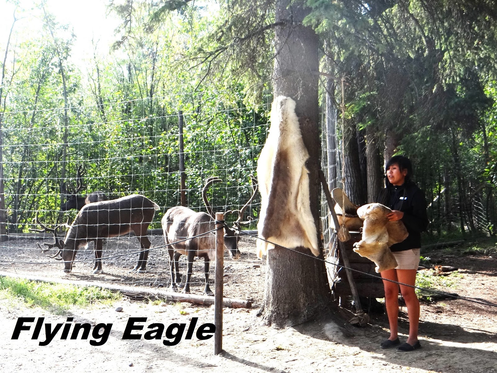 之後我們下船走走,此時有當地風土民情的不同介紹供我們參加。其中一個是讓我們了解,阿拉斯加人如何在有限的資源中就地取材,包括用植物做成籃子、利用豢養的馴鹿的毛皮取暖等。原來成年的馴鹿站著時,肩高(即不計算角的高度)可達150公分,還不矮咧!我們還看到各種動物的毛皮,有大有小,有長有短。摸上去真的柔軟舒適,十分溫暖。當地的男士喜歡展示自己狩獵的能力,所以自己的妻子穿戴的毛皮愈是華麗,丈夫就愈有面子。在這裡解說示範的都是當地工讀的大學生,長得都有些像亞洲人。他們每回解說前都會自我介紹從哪裡來,在哪裡讀什麼科系,將來打算從事什麼行業等等,這種經驗相信對年輕人是很好的訓練。